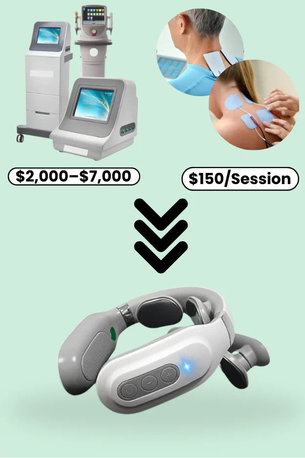Neck stiffness, posture tension, tight shoulders, and stress-related tension — with adjustable modes and levels.